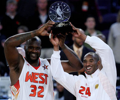 掀翻赛场的大鲨鱼,他和科比一样拥有12座奖杯,这也是兄弟的缘分啊。他的12座NBA奖杯组成是,4个总冠军,3个FMVP,3个AMVP,一个MVP的,还有一个最佳新秀(ROY)。科比和奥尼尔在2009年的全明星上面两人共同捧起AMVP奖杯的身影,至今难忘。