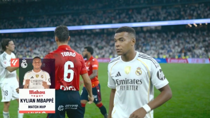 8月20日讯 2025-26赛季西甲首轮,皇马1-0战胜奥萨苏纳,取得开门红。本场比赛,造点+点射的姆巴佩当选全场最佳。